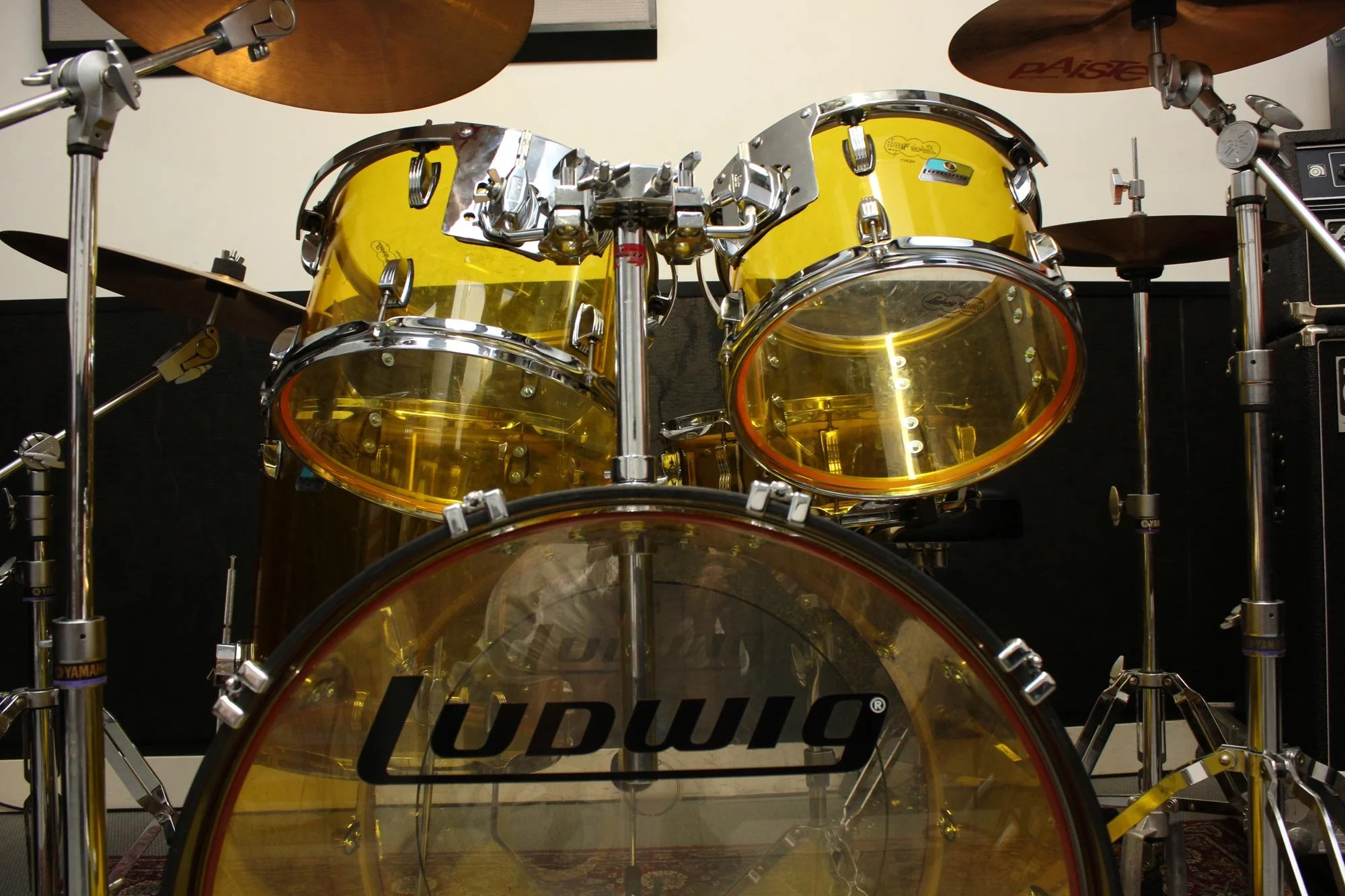 Marshall, Orange, y una espectacular Ludwig Vistalite, un icono del Rock and Roll.